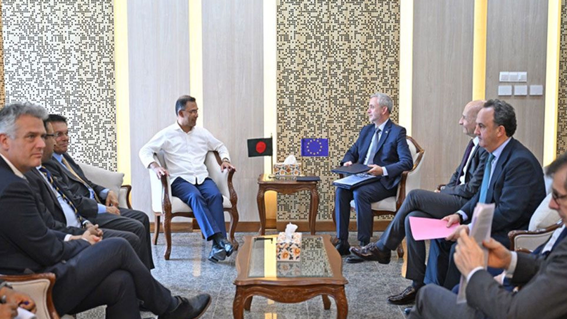 প্রতিনিধিদলের নেতৃত্ব দেন ঢাকায় নিযুক্ত ইউরোপীয় ইউনিয়নের রাষ্ট্রদূত মাইকেল মিলার।